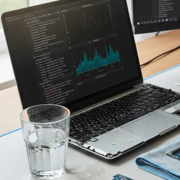「うっかり飲み物をこぼしてしまった」「雨でカバンの中まで濡れてしまった」…そんな予期せぬトラブル、実はパソコン修理のご依頼でも非常に多いケースです。